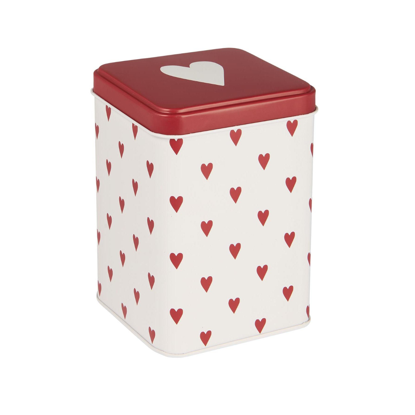Bewahrt deine Teebeutel oder Küchenutensilien in dieser bezaubernden quadratischen Dose. Das Herzmuster bringt einen Hauch von skandinavischer Charme.
