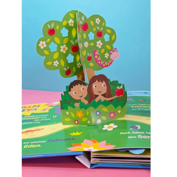 Dieses liebevoll gestaltete Pop-up-Buch begeistert Kinder ab 3 Jahren mit sieben der bekanntesten Bibelgeschichten – kindgerecht erzählt und eindrucksvoll in Szene gesetzt. Beim Umblättern entfalten sich farbenfrohe 3D-Szenen: von Adam und Eva über David, Jona und Daniel bis hin zur Geburt und Auferstehung Jesu.